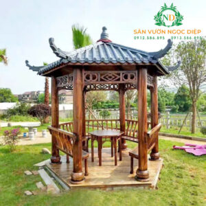 Nhà chòi sân vườn tận dụng tối đa không gian ngoài trời. Tạo bầu không khí thoải mái thư giãn nơi thiên nhiên